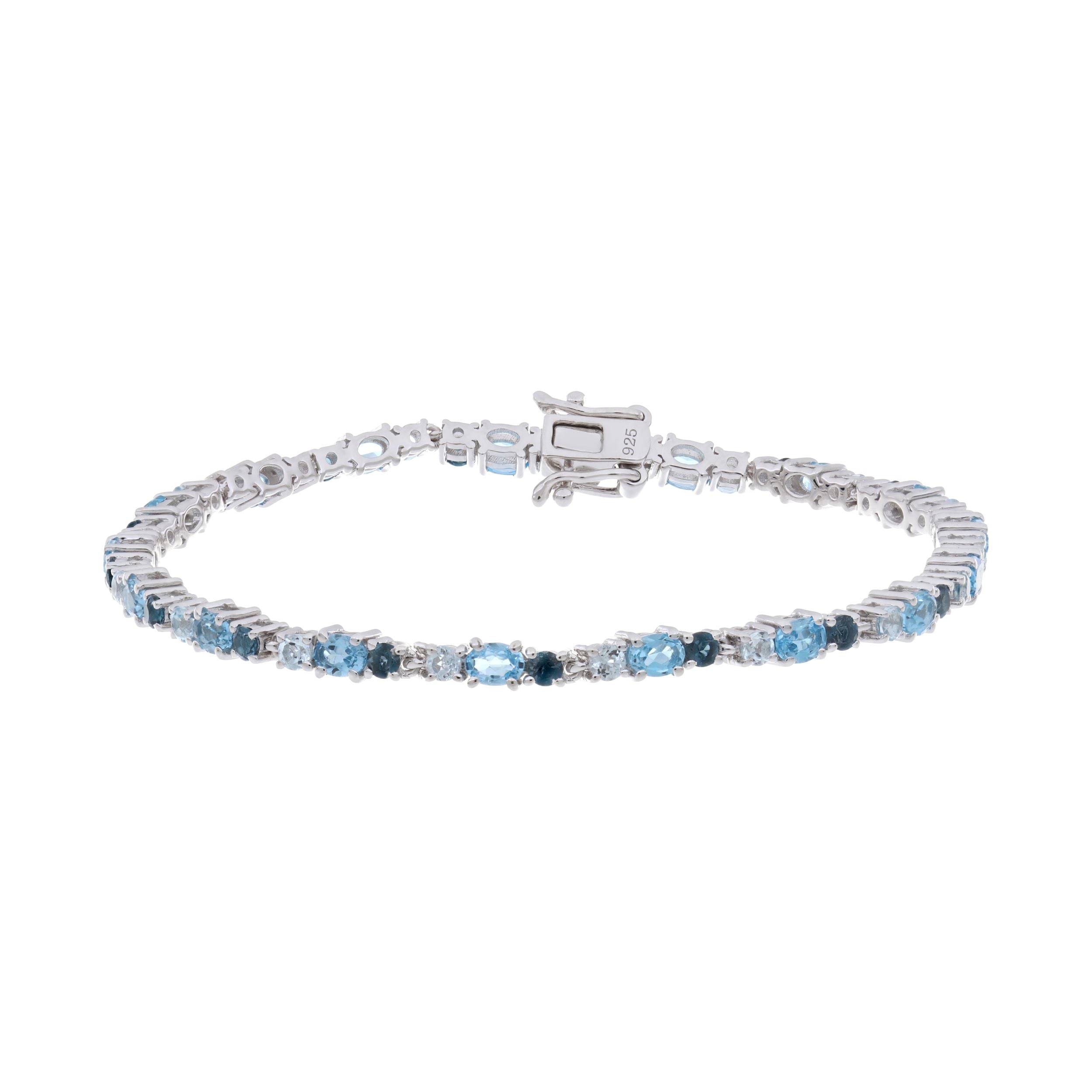 Enhance your jewelry collection with the Swiss Blue Topaz with Accent Stones 7.30ctw Bracelet in Sterling Silver. This bracelet features vibrant Swiss Blue Topaz gemstones complemented by sparkling accent stones, creating a refined and timeless design. Crafted in high-quality sterling silver, it combines durability with elegance for any occasion. The perfect blend of radiant gemstones and polished metal ensures a sophisticated accessory for your wardrobe.