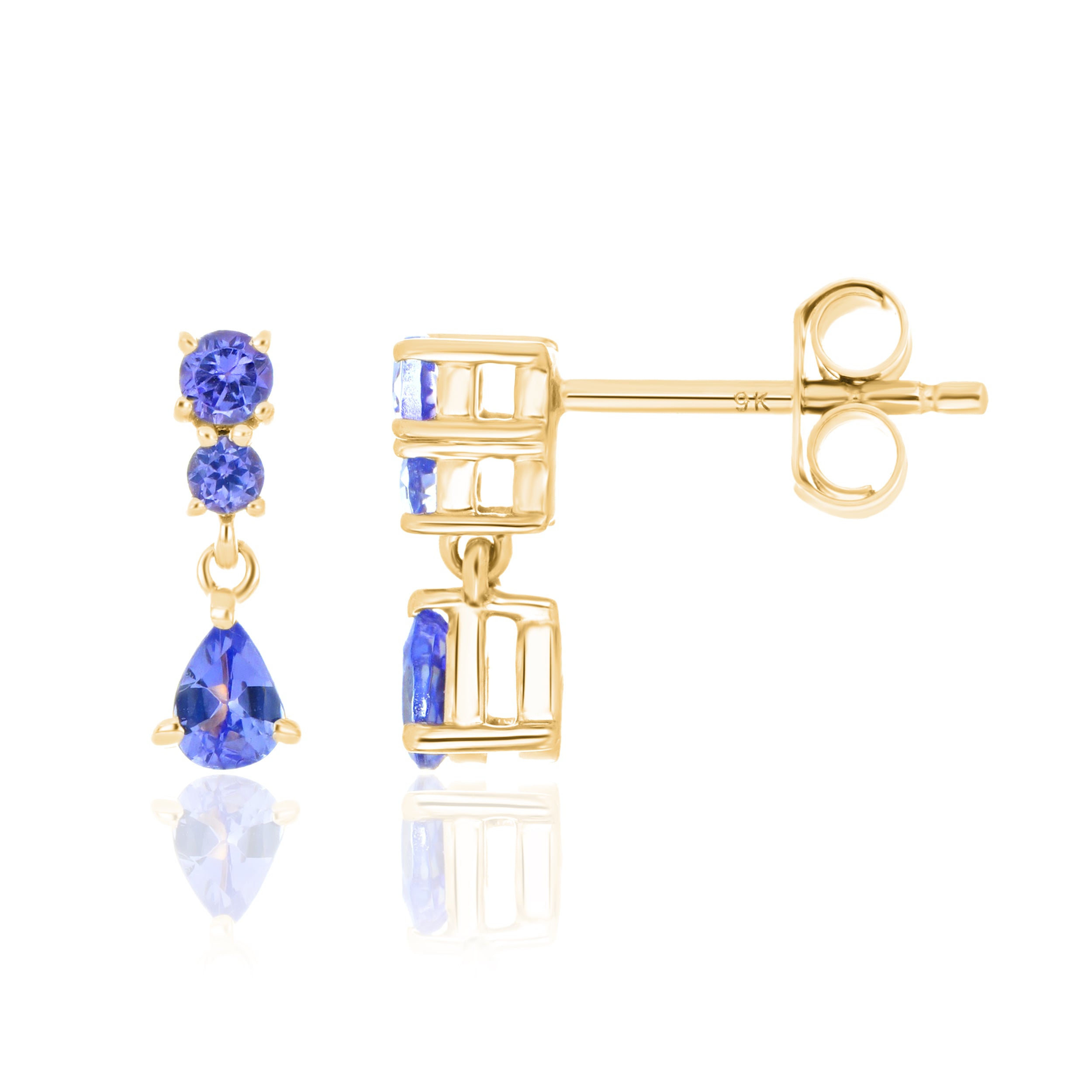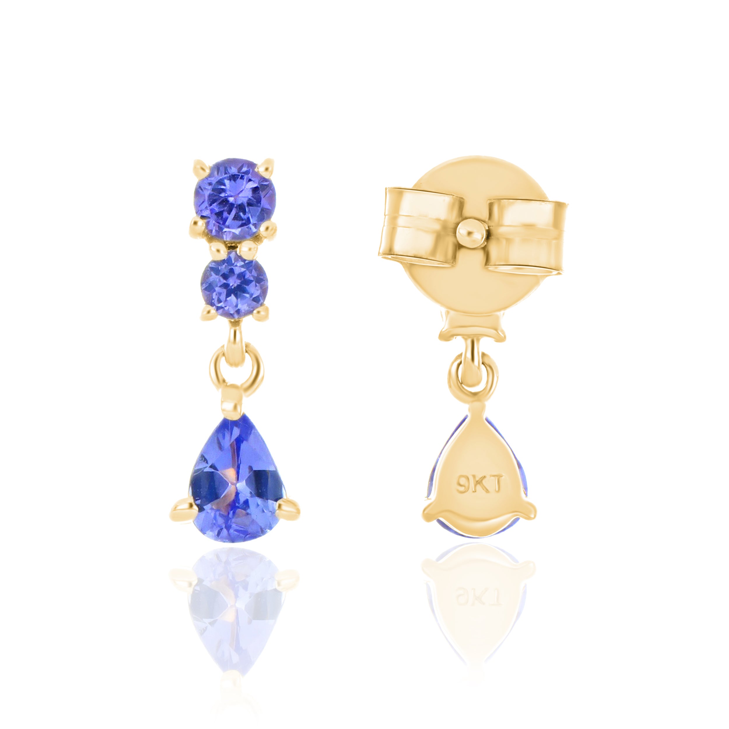 Tanzanite AA Drop Stud Earrings – 9KT Yellow Gold | Fine Jewelry