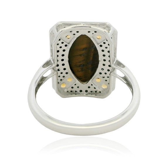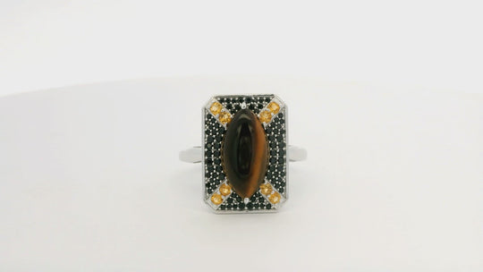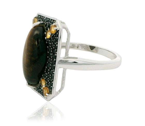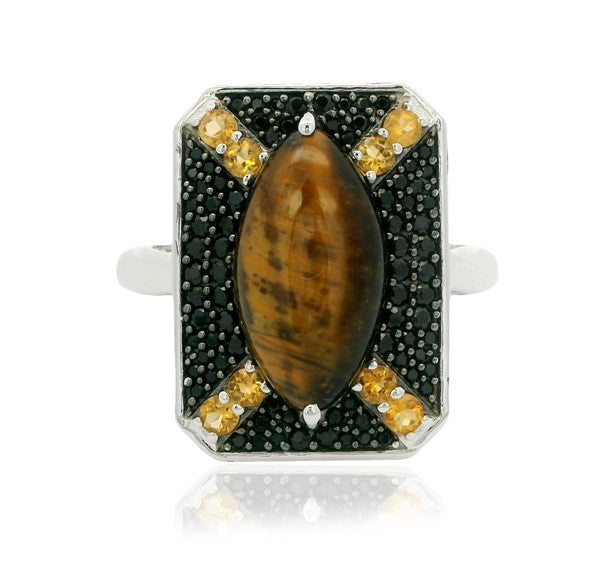 Tiger Eye With Multi Stone 5.30ctw Ring In 925 Sterling Silver