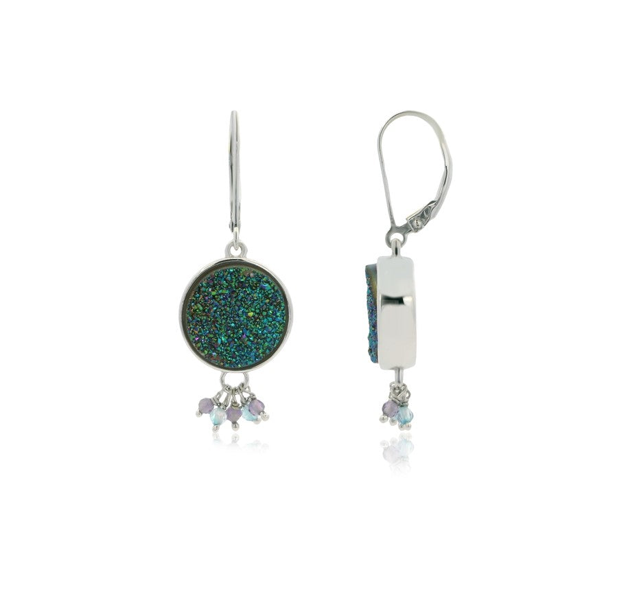 Tree Green Druzy Quartz 13.30ctw Lever Back Earrings In 925 Sterling Silver